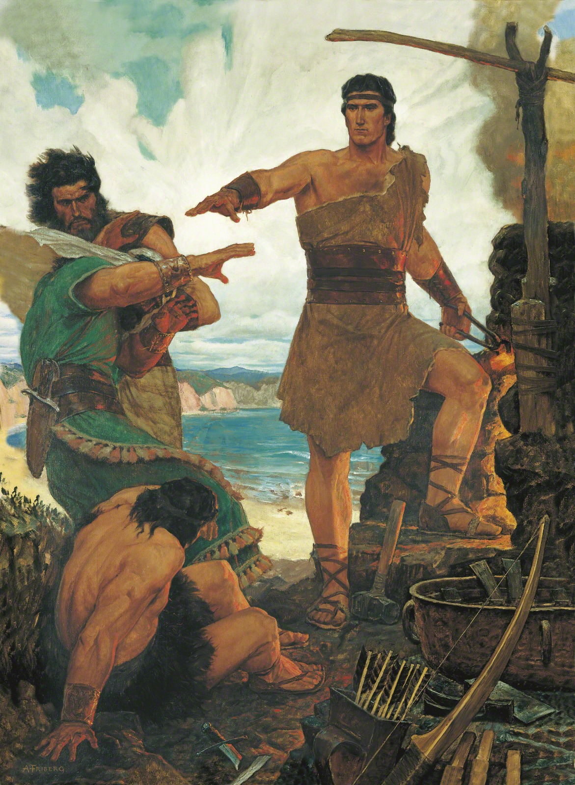 Nephi Subdues His Rebellious Brothers (Nephi Rebuking His Rebellious Brothers), by Arnold Friberg (62044); GAK 303; GAB 70; Primary manual 3-37; Primary manual 4-18; 1 Nephi 17:15–55